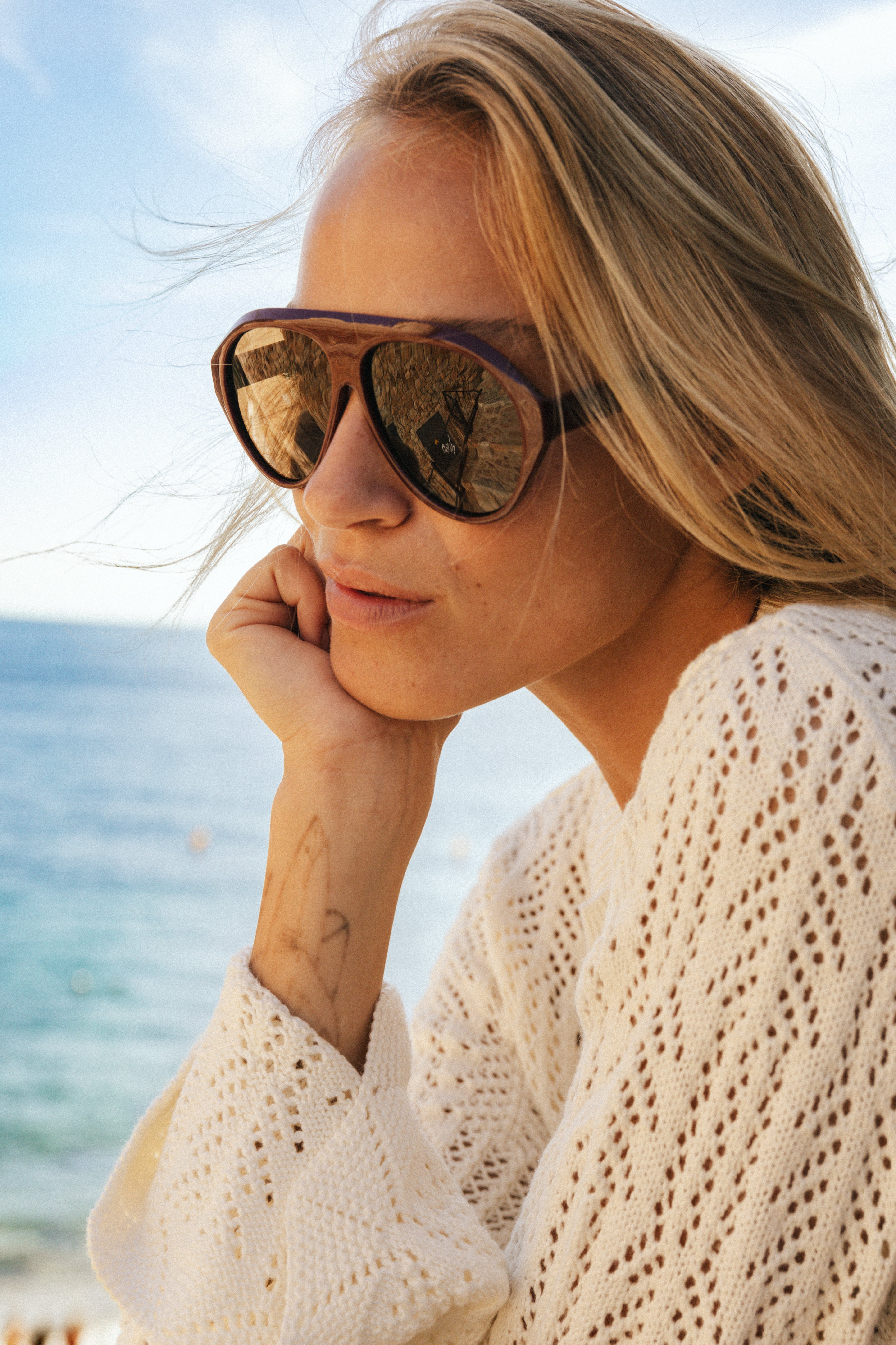 Each pair of sunglasses comes with a vegan leather protective pouch.